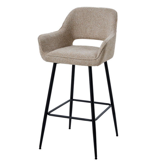 Het slanke, zwarte metalen onderstel is gepoedercoat voor extra duurzaamheid en stabiliteit. Dankzij de geïntegreerde voetensteun zit je comfortabel, ook tijdens langere momenten aan het kookeiland of de bar. De barkruk heeft een maximale draagkracht van 125 kg.