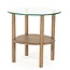 De bijzettafel is gemaakt van eikenhout en heeft een beschermende lakafwerking die de natuurlijke houtstructuur extra benadrukt. Het blad van gehard glas maakt de tafel duurzaam en stevig. Dankzij de extra houten plank is er voldoende ruimte voor decoratieve items, boeken of tijdschriften.