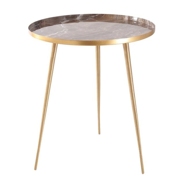 Breng direct meer sfeer in je interieur met de Jiven bijzettafel. Deze tafel is gemaakt van ijzer in een strak ontwerp. Het blad van de tafel heeft een mooie marmer print. Dit, in combinatie met de gouden kleur, geeft het item een moderne twist.