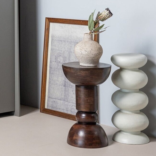 De Brilo bijzettafel van het Nederlandse interieurmerk WOOOD brengt een frisse uitstraling in jouw interieur. Door de vriendelijk ronde vormen en het creatieve design zorgt deze bijzettafel voor een uitnodigende sfeer in je woonkamer. De crème kleur past goed bij verschillende interieurstylen en combineert makkelijk met andere meubels. Je kunt de tafel naast je bank plaatsen voor je koffie of boek, of laat hem zelf shinen als decoratie. Het unieke ontwerp maakt deze bijzettafel een blikvanger in je ruimte.