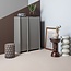Essenhout wordt gekenmerkt door de lichtbruine tint met een zachtgele gloed en duidelijk zichtbare nerftekening. Essen fineer bestaat uit meerdere stroken welke verlijmd worden op een gladde, houten basis. Het fineer wordt afgewerkt met een beschermende coating, deze bescherming zorgt voor de duurzame kwaliteit van een gefineerd meubelstuk. Het essenhout is FSC gecertificeerd en gespoten in een dekkende warmgrijze kleur. De legplanken zijn gemaakt van spaanplaat melamine.