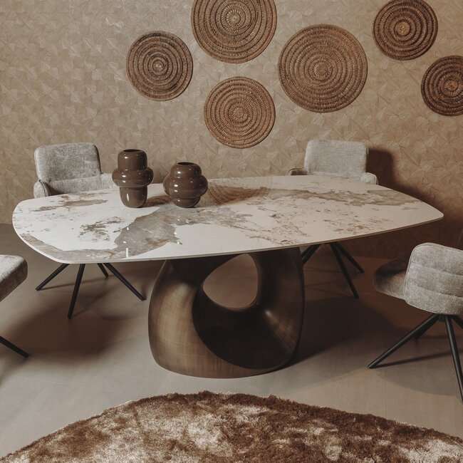 Castello is een keramische eetkamertafel met een Deens ovaal blad en een bijzonder vormgeven onderstel. Deze solide eettafel heeft een chique uitstraling en past helemaal in de interieurstijlen van nu, zoals hotel chique en industrieel. Eetkamertafel Castello is in meerdere maten leverbaar.
