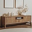 Het Crotone TV meubel heeft een minimalistisch design met natuurlijke elegantie. Dit meubel is gemaakt van acaciahout met een rustige Scandinavische stijl, zachte lijnen en een golvend front. Dit geeft een moderne touch aan jouw interieur.