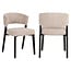 Eetkamerstoel Zeno heeft een compact silhouet met subtiele rondingen en minimale armsteun. De zwarte metalen poten en beige leopard-stof geven hem een speelse uitstraling. Ook verkrijgbaar in earth tweed.