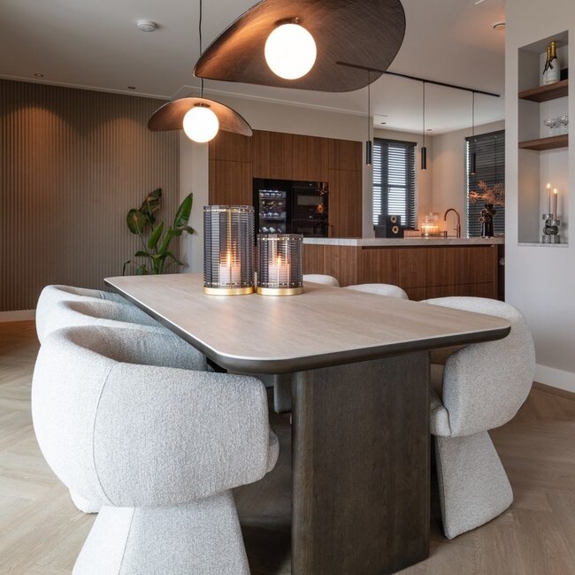 Eettafel Nando combineert eikenfineer en keramisch travertin voor een verfijnde uitstraling Lees meer.