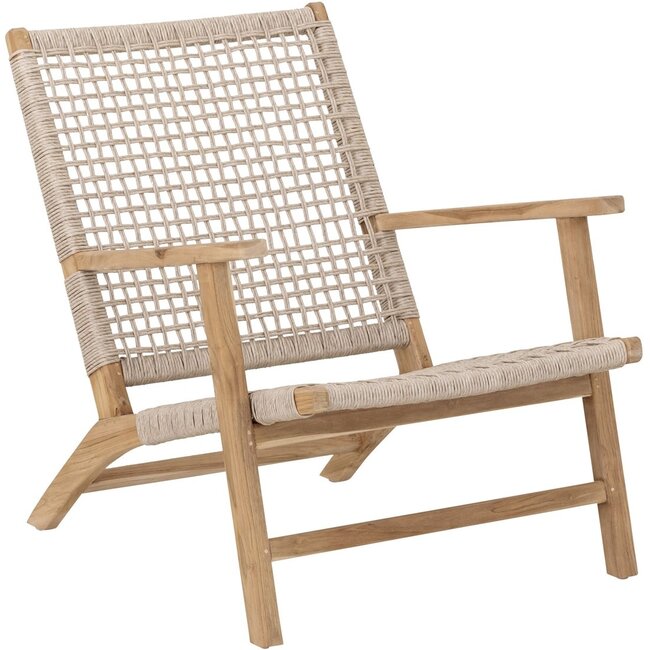 Fauteuil William hoge rug van MUST Living is gemaakt van rustiek teakhout en synthetisch touw, gemaakt om buiten neer te zetten. Comfortabel, tijdloos en stijlvol. Lees meer.