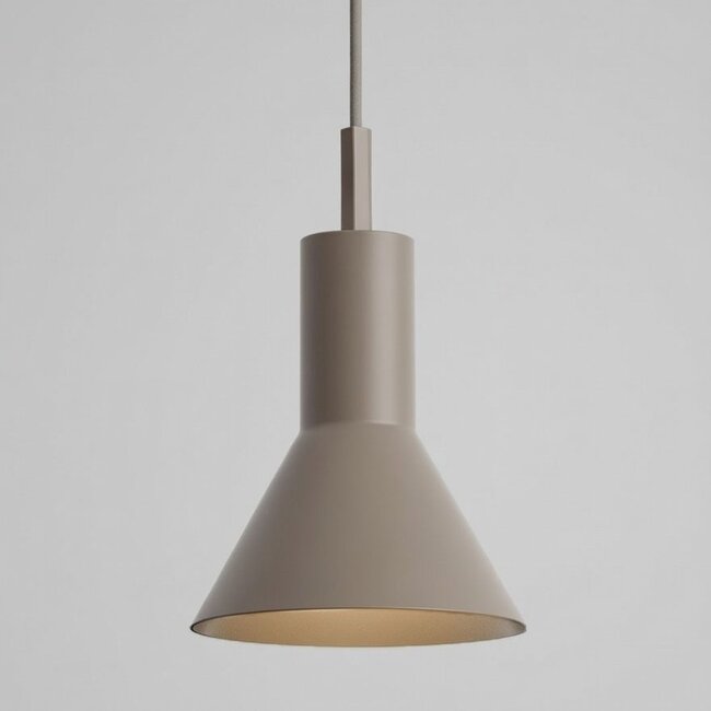 De Hanglamp STAVANGER Zand heeft een zachte, lichte uitstraling en past perfect in een rustig, natuurlijk interieur. De taps toelopende vorm en matte zandkleur zorgen voor een serene sfeer boven de eettafel, het kookeiland of in de woonkamer.