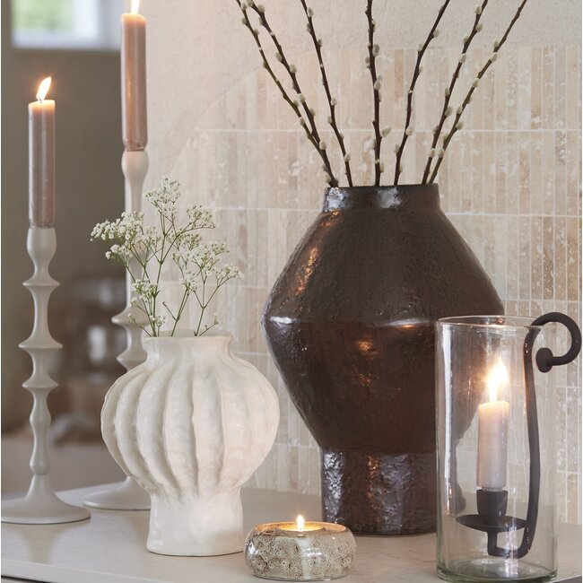 Ontdek de charme van Kandelaar VICARI crème. Een stijlvolle, metalen sfeermaker die met zijn crèmekleur en ideale afmetingen (Ø12x36 cm) elke ruimte verrijkt. Perfect als cadeau! Lees meer.