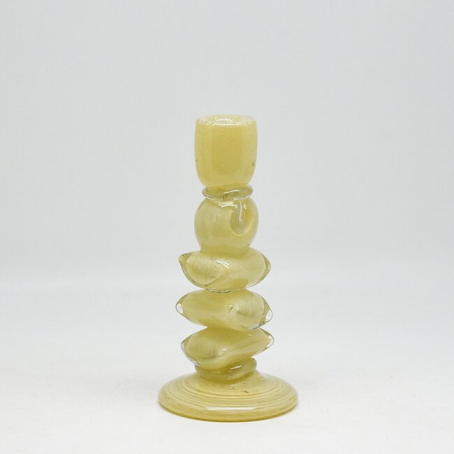 De kandelaar is handgemaakt en mondgeblazen, wat elk exemplaar uniek maakt. Kleine kleurverschillen en onregelmatigheden horen bij het fabricageproces en dragen juist bij aan het ambachtelijke karakter van dit bijzondere item.