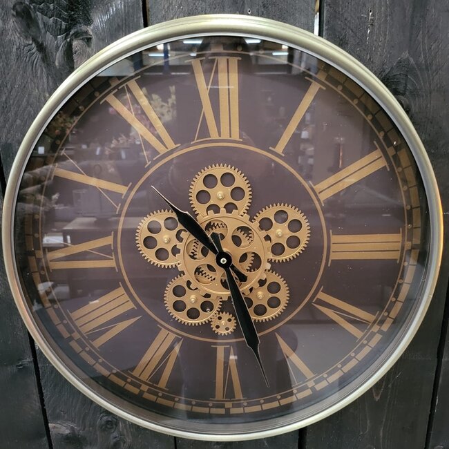 Met deze leuke, mooie en stijlvolle klok Thom van 53 cm kun je de tijd echt niet vergeten! De bruine wijzerplaat in combinatie met de grote gouden Romeinse cijfers en zwarte wijzers maken het een stoere, stijlvolle klok die past bij ieder interieur. De nikkel coating maakt deze klok erg uniek!