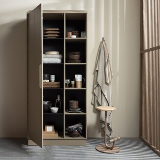 De Lowen opbergkast bevat een mooie mix van opbergen en displayen. De hoge wandkast komt uit de Exclusive collectie van het Nederlandse interieurmerk WOOOD en is vervaardigd uit FSC-gecertificeerd grenenhout met een mooie, aardse finish. De open vakken zorgen voor een stijlvolle speelsheid van dit praktische meubel.