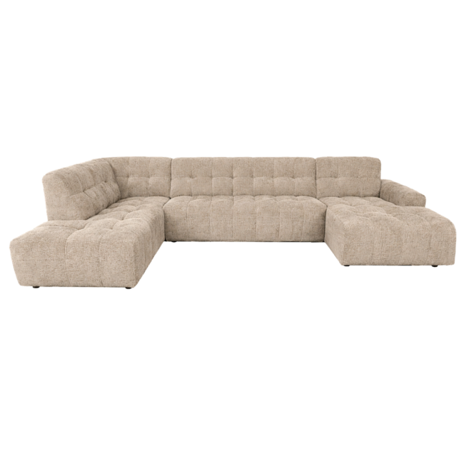 De Memphis bank heeft een krachtig en modern ontwerp met brede zitvlakken en strakke lijnen. De zachte stoffering en lichte beige kleur zorgen voor een warme en toegankelijke uitstraling, waardoor de bank perfect past in moderne, Scandinavische en eigentijdse interieurs.