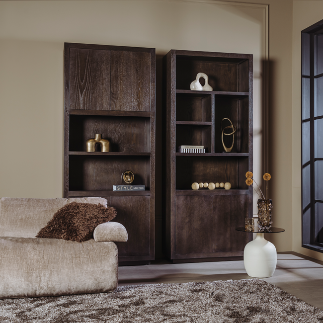 De Mincio opbergkast 90 cm – Oak Veneer Espresso is een stijlvolle toevoeging aan iedere woonruimte. De kast heeft een indrukwekkende hoogte van 220 cm en combineert open vakken voor decoratie met gesloten opbergruimte voor een opgeruimd geheel. De warme espresso-afwerking benadrukt de natuurlijke houtnerf en zorgt voor een luxe, uitnodigende uitstraling.