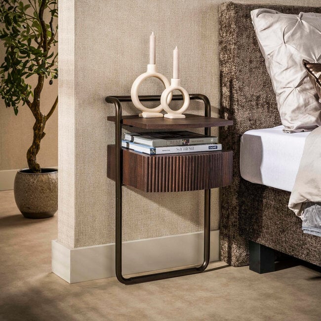 Met Nachtkastje Bend staand kies je voor een stijlvol en praktisch nachtkastje met een luxe uitstraling en extra hoogte. Een perfecte combinatie van design en functionaliteit voor iedere slaapkamer.