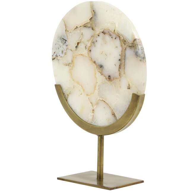 Ornament op voet GOUYA wit agaat+antiek brons. Het marmeren deel is uitneembaar en kunt u in de houder plaatsen op de gewenste stand.