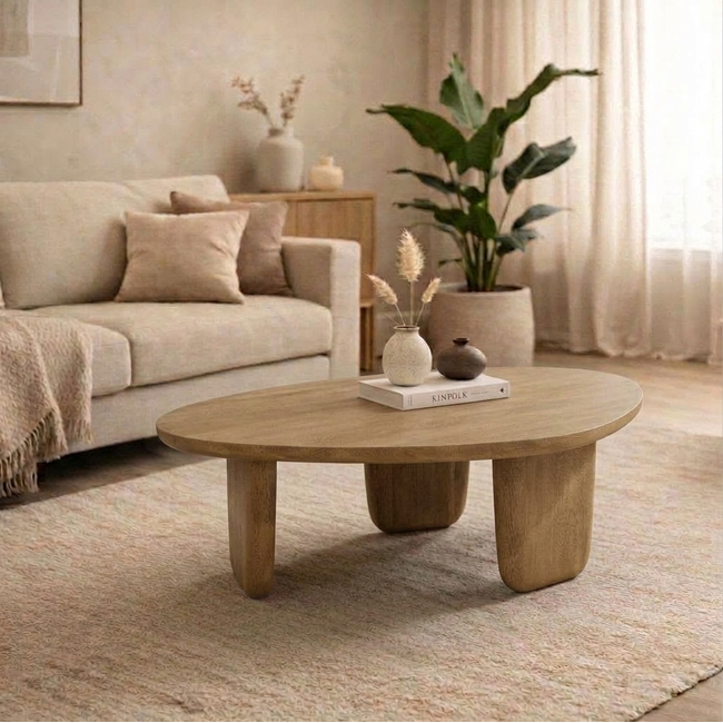 De Salontafel Maud large naturel combineert een organisch design, royale afmetingen en de warme uitstraling van mango hout. Een unieke en stijlvolle salontafel die je interieur verrijkt.