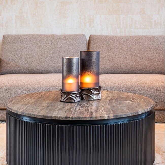 Combineer de Salontafel Russo bruin 90Ø met accessoires in warme tinten, zachte stoffen en luxe materialen zoals messing, fluweel of marmer. Voeg een bijzettafel of vloerkleed toe voor een compleet geheel.