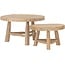 De tafels zijn vervaardigd uit teakhout tak, wat zorgt voor een robuuste, organische uitstraling. De natuurlijke vormen en zichtbare houtstructuur geven elke tafel een uniek karakter. Dankzij het tijdloze design past deze set perfect binnen een bohemian, landelijke of natuurlijke woonstijl.