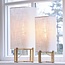 Met zijn royale formaat van 21,5 x 21,5 x 50,5 cm is deze tafellamp een echte blikvanger op je dressoir, nachtkastje of bijzettafel. De zachte textuur van de bouclé stof zorgt voor een diffuus, warm licht dat direct sfeer geeft aan elke ruimte. De kruislings geplaatste houten poten geven het ontwerp een stoere, eigentijdse look.