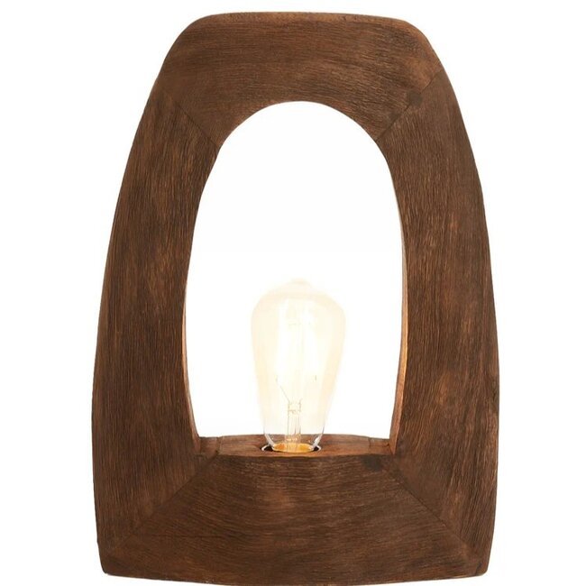 Deze lamp brengt leven in de brouwerij. De houten handgemaakte lamp is opengewerkt zodat de lichtbron kan shinen. Plaats een mooie lichtbron in tafellamp Carini voor een sfeervol resultaat.