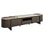 TV-meubel Langford heeft een basis van donker eikenfineer met een glanzend keramisch blad. Het lage profiel en strakke design bieden zowel stijl als opbergruimte in moderne interieurs.