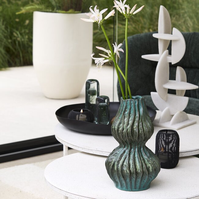 Gebruik de Vania vaas als los decoratief object of combineer haar met enkele decoratieve takken of droogbloemen. Plaats de vaas op een dressoir, bijzettafel of open kast. Dankzij haar kleur en vorm past zij perfect binnen woonstijlen zoals modern, botanisch, eclectisch en hotel chique.