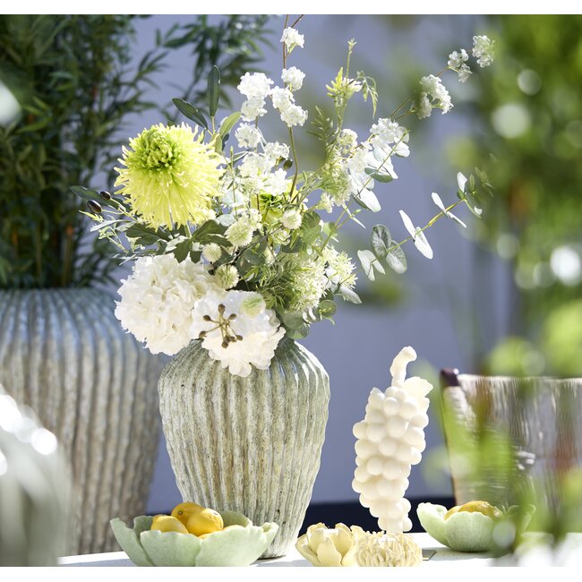De CACTI vaas van Light & Living is een echte blikvanger met zijn organische vorm, opvallend reliëf en glanzende mintgroene afwerking. Dankzij het speelse, cactusachtige ontwerp en het bijzondere glazuur voegt deze vaas een uniek accent toe aan elk interieur.
