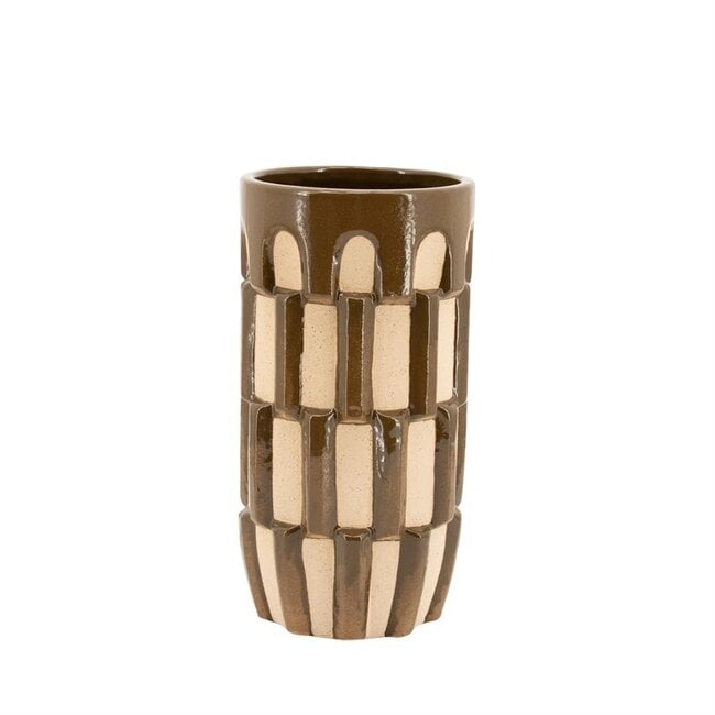 Vaas Mocsy - type 2 van By Boo is een vaas in bruin met een eigentijdse uitstraling. Gemaakt van aardewerk en uitgevoerd in 17x17x32,5 cm, ideaal voor een warm en modern interieur. Lees meer.