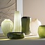 Het gebruik van solid colored glass zorgt ervoor dat de groene kleur rijk en stijlvol oogt. Het glas vangt het licht op een zachte manier, waardoor de vaas gedurende de dag steeds een iets andere uitstraling krijgt.