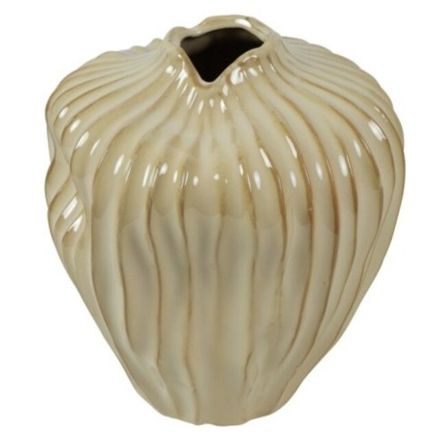 De warme crème kleur in combinatie met de glanzende afwerking zorgt voor een frisse, lichte en stijlvolle uitstraling. De subtiele kleurnuances in het glazuur geven diepte en maken iedere vaas uniek.