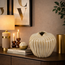 De Vaas Serafin M crème kenmerkt zich door haar sierlijke, verticale reliëflijnen die subtiel over de ronde vorm lopen. Deze golvende structuur geeft de vaas een elegant en dynamisch karakter, terwijl de zachte rondingen zorgen voor een harmonieus silhouet.