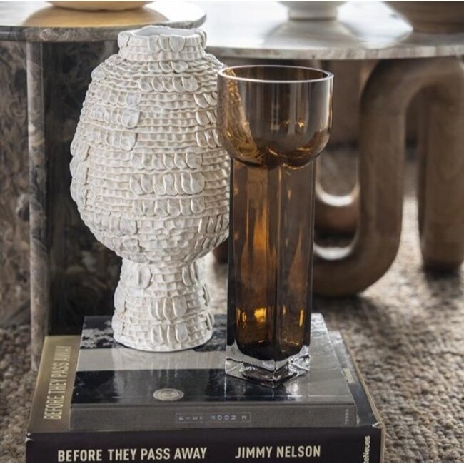 Vaas Vea - type 3 van By Boo is een vaas met een bruine tint en een verfijnde uitstraling. De combinatie van glas en het formaat van 13x13x35 cm maakt dit item passend in een modern en warm interieur.