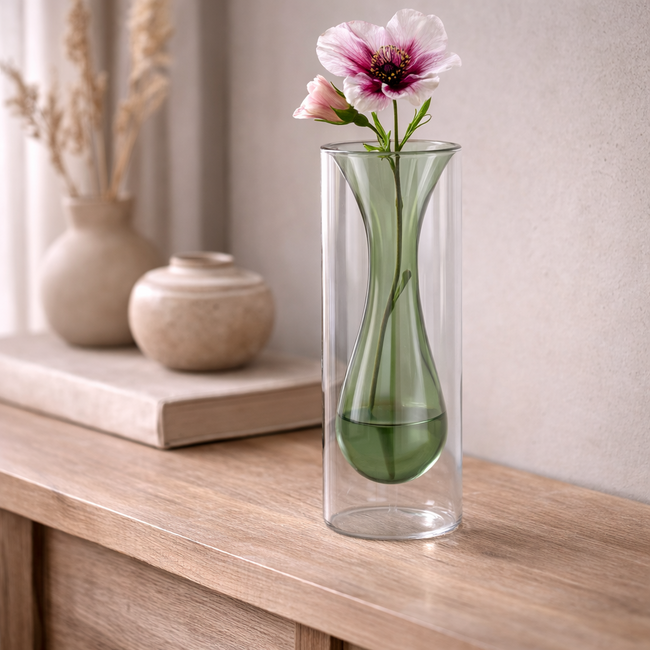 De Vaas Yanna Groen met tapsvormige binnenkant is een stijlvolle keuze voor liefhebbers van moderne woonaccessoires met een frisse, verfijnde uitstraling.