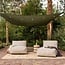 De loungestoel is bekleed met een polyester stof genaamd Olefin. Olefin is een sterke, onderhoudsvriendelijke stof die vochtwerend en UV-bestendig is, waardoor kleuren lang mooi blijven. Dankzij de zachte vezel is het ideaal voor intensief dagelijks gebruik. De outdoor bekleding is speciaal ontwikkeld voor buitengebruik en biedt een hoog zitcomfort gedurende het hele buitenseizoen.