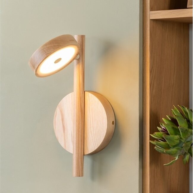 Ontdek de Wandlamp OKINAWA naturel van essenhout met geïntegreerde LED en 3-staps dimmer. Perfect als bedlamp of leeslamp in een modern interieur. Lees meer.