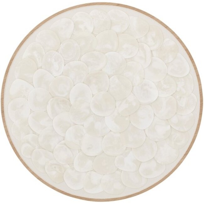Met een royale diameter van 85 cm is dit wandpaneel ideaal als statement piece boven een dressoir, bank of in de hal. Elk paneel is uniek dankzij het gebruik van natuurlijke materialen en handmatige afwerking.