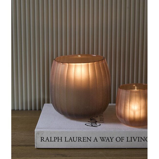 De Valora Votive windlichten van Riviera Maison brengen direct warmte en sfeer in huis. Dankzij het geribbelde glas en de warme tint ontstaat er een prachtig lichtspel wanneer je er een kaars in plaatst. De zachte gloed zorgt voor een gezellige en ontspannen ambiance, perfect voor iedere ruimte.