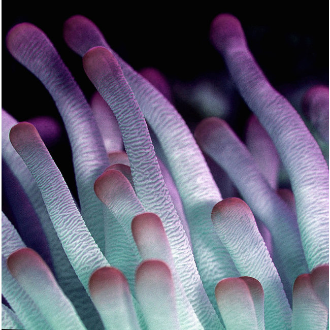 Paars blauw koraal in een donkere zee. Dit kunstwerk wordt geprint op Dibond wit